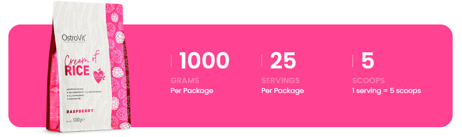 OstroVit Cream of Rice je serija riževih kaš, sedaj tudi z naravnim okusom. Naš novi izdelek vam bo omogočil hitro in enostavno dopolnitev ustrezne ravni ogljikovih hidratov v vaši prehrani. Kaša je bila ustvarjena predvsem za ljudi, ki iščejo idejo za okusen prigrizek po treningu. OstroVit riževa krema z naravnim okusom je primerna za vegane in vsebuje samo naravno prisotne sladkorje.