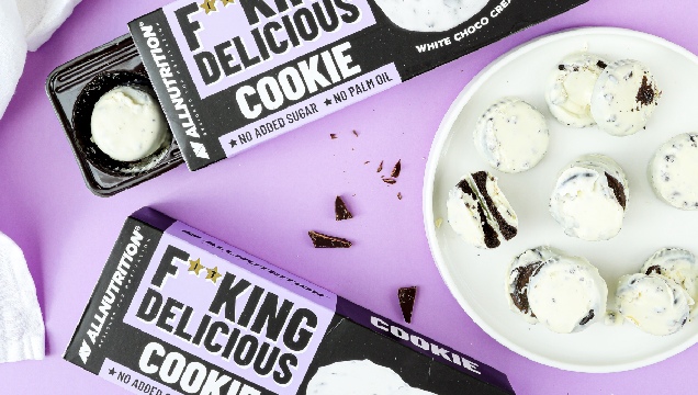 FITKING DELICIOUS COOKIE WHITE CHOCOLATE CREAM so okusni krhki piškoti iz linije Delicious - brez dodanega sladkorja ali palmovega olja! Čudoviti, kakavovi piškoti z mlečno kremo, obliti s čudovito, belo čokolado in koščki biskvita - kdor jih bo vsaj enkrat poskusil, se bo zaljubil vanje!